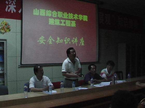 2009年5月26日,红足—世官网建筑工程系在西区实训楼多媒体教室举办了安全知识讲座。本次讲座旨在如何应对当今社会存在的种种如诈骗、扒窃、火灾等安全隐患,提高广大学生的安全意识。