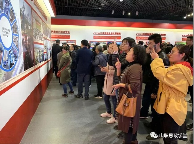 2019年10月22日下午,思政部党总支组织全体教师党员赴山西博物院观看“壮丽70年 奋斗新时代”图片展。展览长廊像一幅展开的历史长卷,一张张图片、一组组数据、一张张图表记录了从建国之初到现在的发展历程,全面展示了山西70年砥砺奋进的辉煌成就。大家细细地观看、认真地聆听,共同感受山西与祖国一起成长的历史巨变,对于山西发展的美好未来有了更坚定的认识,体会到作为山西人的骄傲与自豪也感受到作为山西人应有的使命和担当。大家一致表示,展览令人振奋、鼓劲提气,今后要立足本职,不能辜负这个伟大的时代,在新征程中续写新贡献。