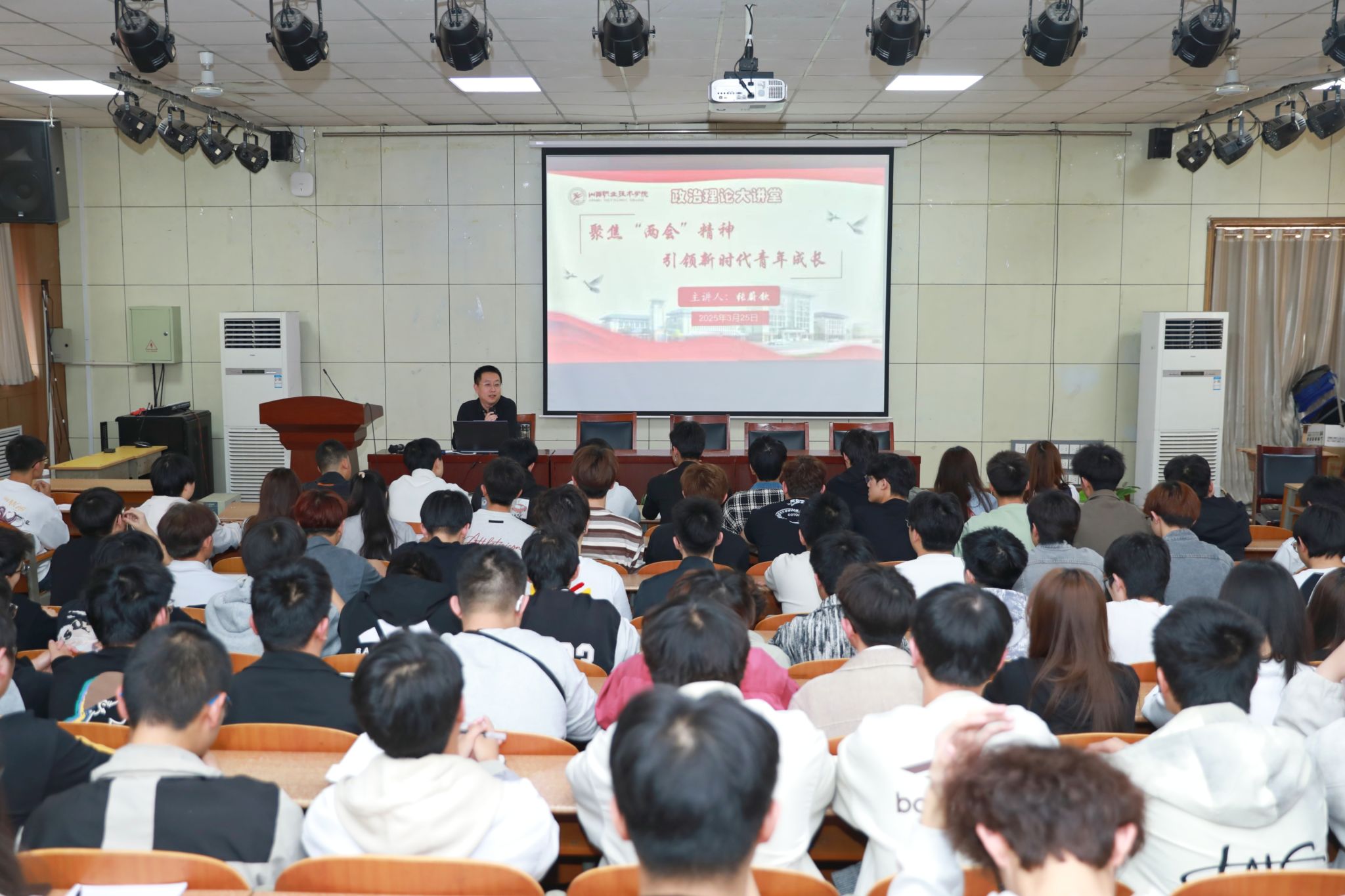 为深入贯彻2025年全国两会精神,助力青年学生精准把握时代发展脉搏,3月25日下午,思想政治理论教学研究部于学院南中环校区成功举办了“政治理论大讲堂”专题学习活动。宣传统战部主持日常工作的常务副部长张蔚钦受邀带来了一场主题为《聚焦两会精神 引领新时代青年成长》的主题报告,现场200余名师生共同参加报告会。
