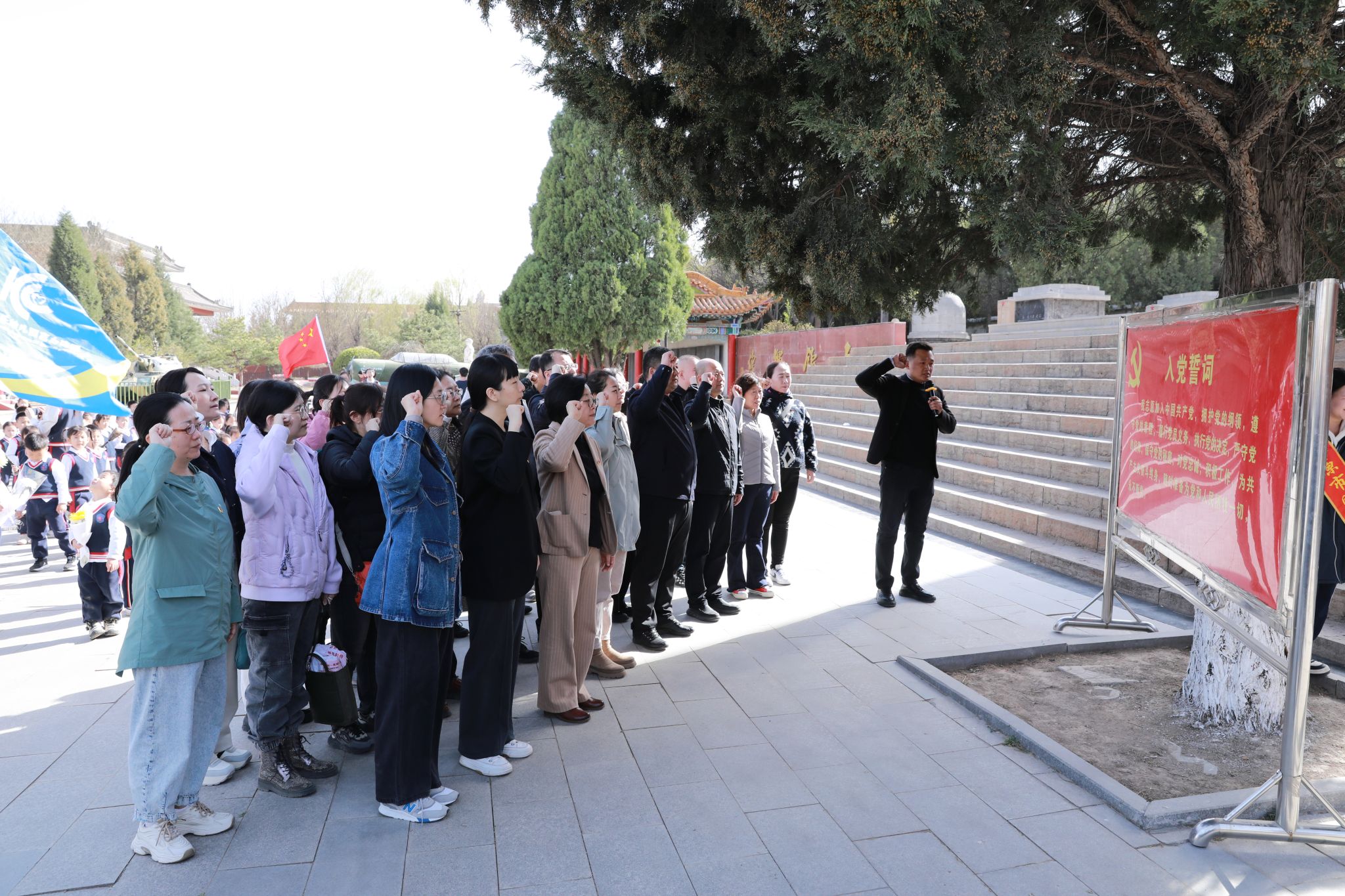 献词后,学生们神情坚定、紧握右拳庄严宣誓,宣誓声洪亮激昂。接着,向烈士纪念碑敬献花圈,随后,其他人手捧菊花有序瞻仰,环绕纪念碑后将花轻放于平台。菊花献毕,全体教师党员面向党旗重温入党誓词,誓言铿锵有力。