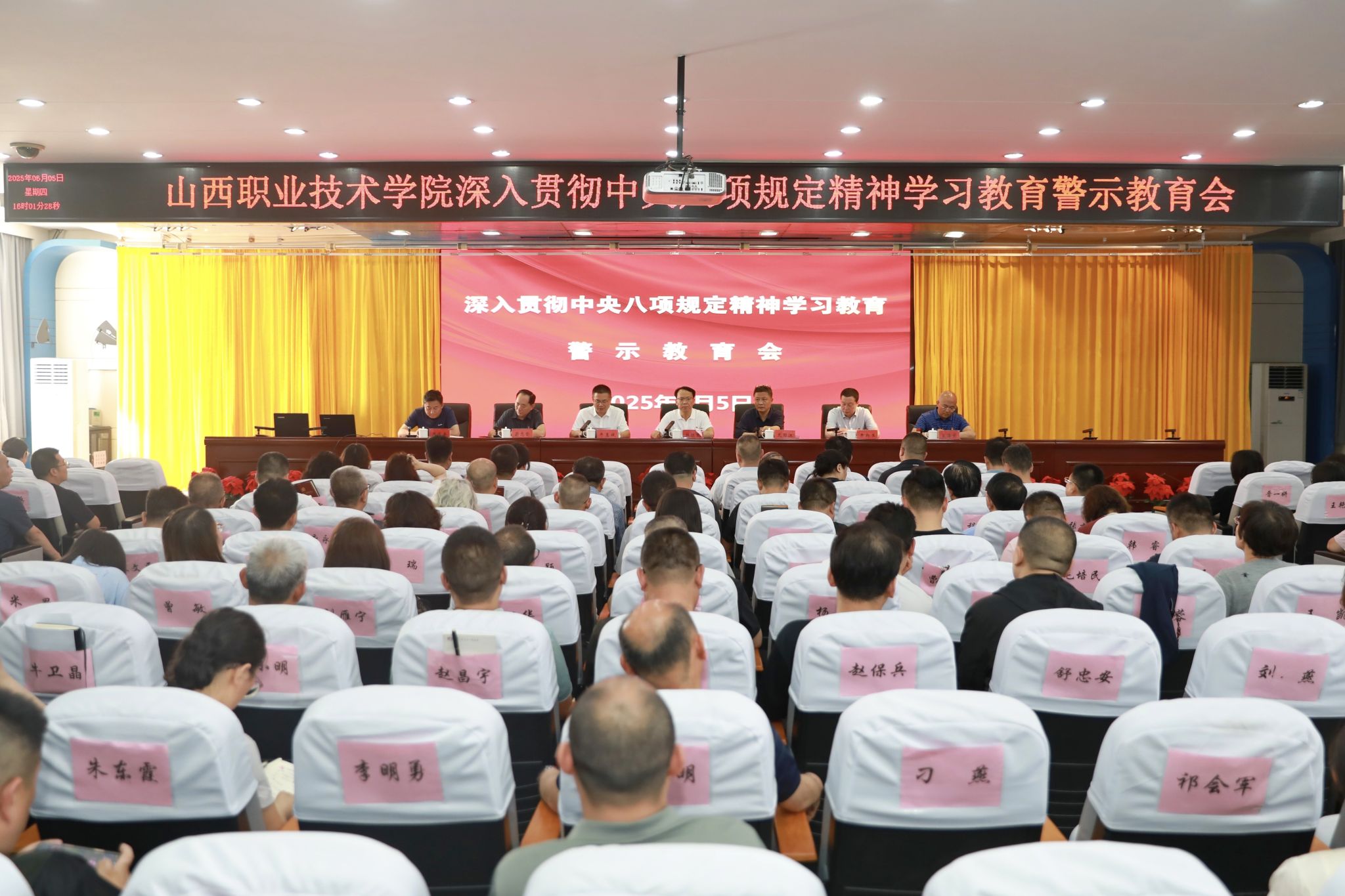 6月5日下午,红足—世官网深入贯彻中央八项规定精神学习教育警示教育大会在坞城校区七楼会议室召开。党委书记赵随民主持会议并讲话,学院领导班子成员、全院副科级以上干部参加会议。