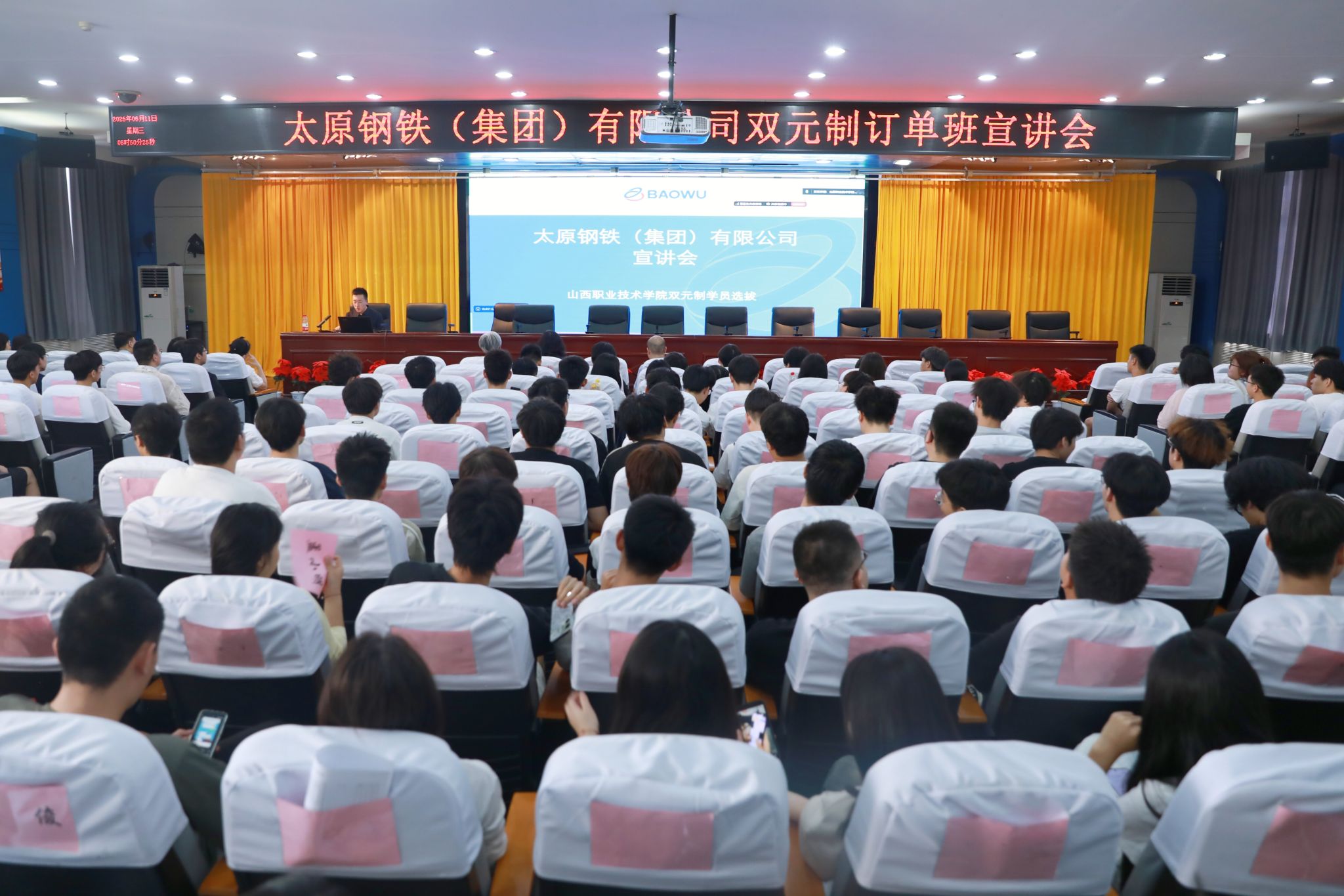 此次宣讲会,全面介绍了太原钢铁(集团)有限公司“双元制订单班”组班要求,旗下各公司发展历程、业务范围、企业文化以及同学们关注的个人职业发展、工作环境等方面的内容。