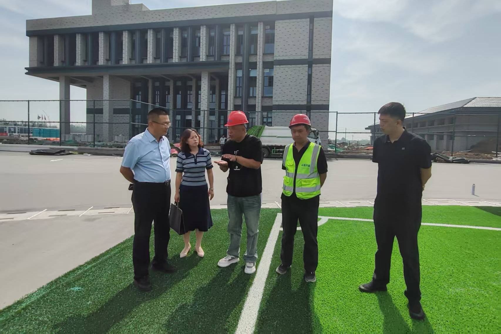 在新校区建设工地现场,检查组走访了学生公寓、食堂及操场等主体建筑及配套设施建设情况,详细了解工程建设最新进展,并对施工中的安全和质量问题提了要求。