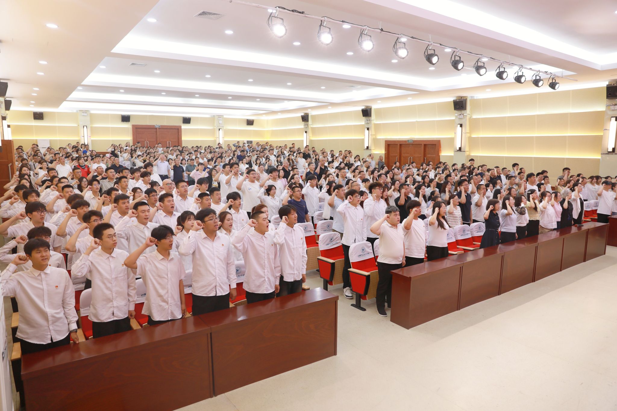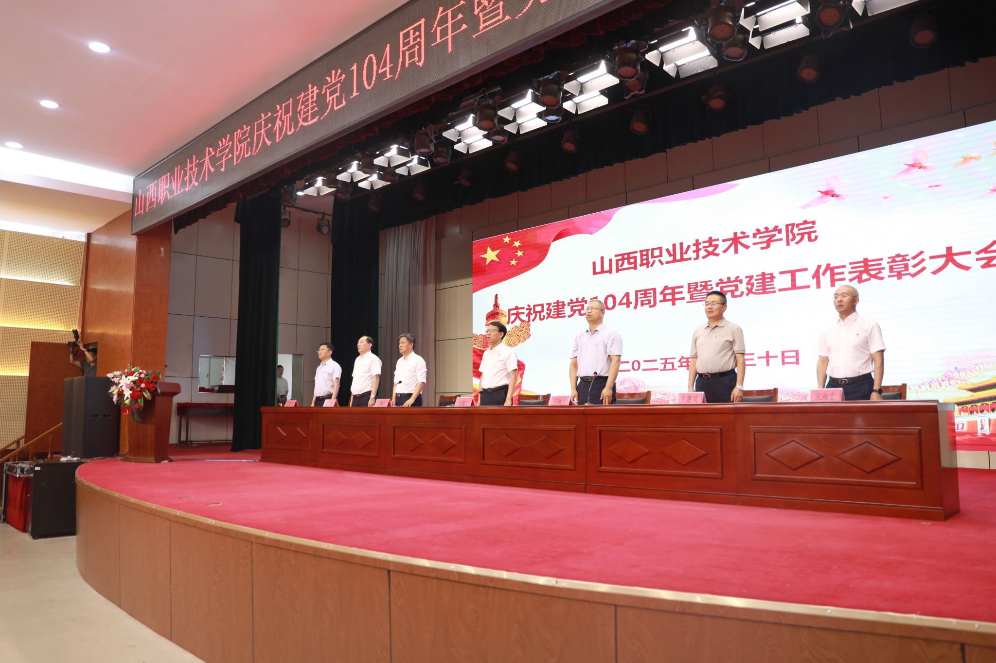 大会在庄严的国歌声中隆重拉开帷幕,全体参会人员起立唱响国歌。会议举行了2025年新接收的预备党员集体入党宣誓及全体党员重温入党誓词仪式,学院党委委员、组织人事部部长张武奎同志领誓,全体党员面向党旗,进行了庄严宣誓。