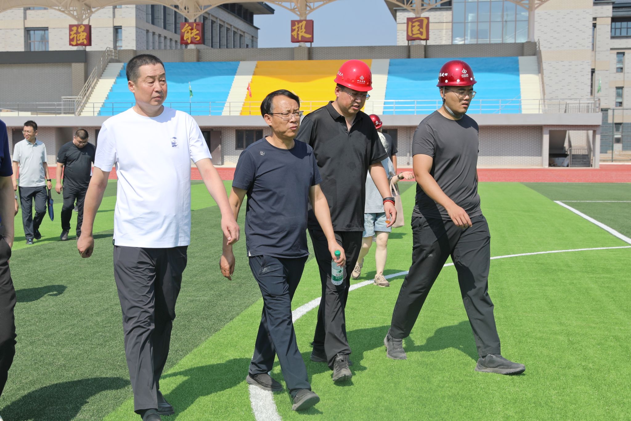 赵随民一行先后来到教学楼、操场、学生宿舍、大门等施工现场,实地考察建设进度并召开现场办公会,重点围绕各区域功能布局、空间利用展开深入研讨。