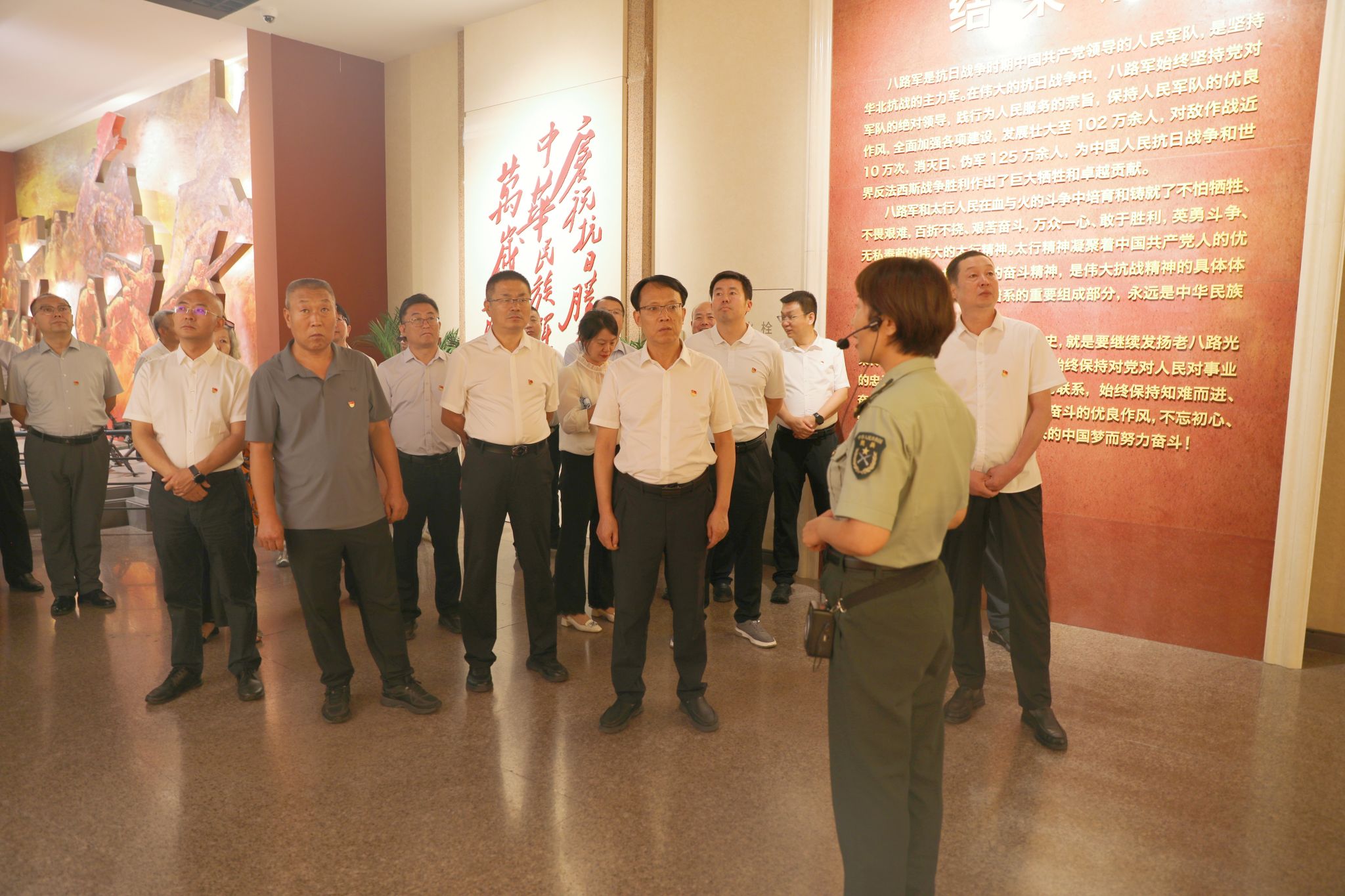 在讲解员的带领下,全体人员依次参观了六个展厅,通过一幅幅珍贵的历史照片、一件件饱经沧桑的革命文物、一段段感人至深的英雄故事,重温红色岁月,回顾了八路军在抗日战争时期浴血奋战、艰苦卓绝的奋斗历程,深刻感悟了“不怕牺牲、不畏艰险;百折不挠,艰苦奋斗;万众一心、敢于胜利;英勇奋斗、无私奉献”的太行精神。