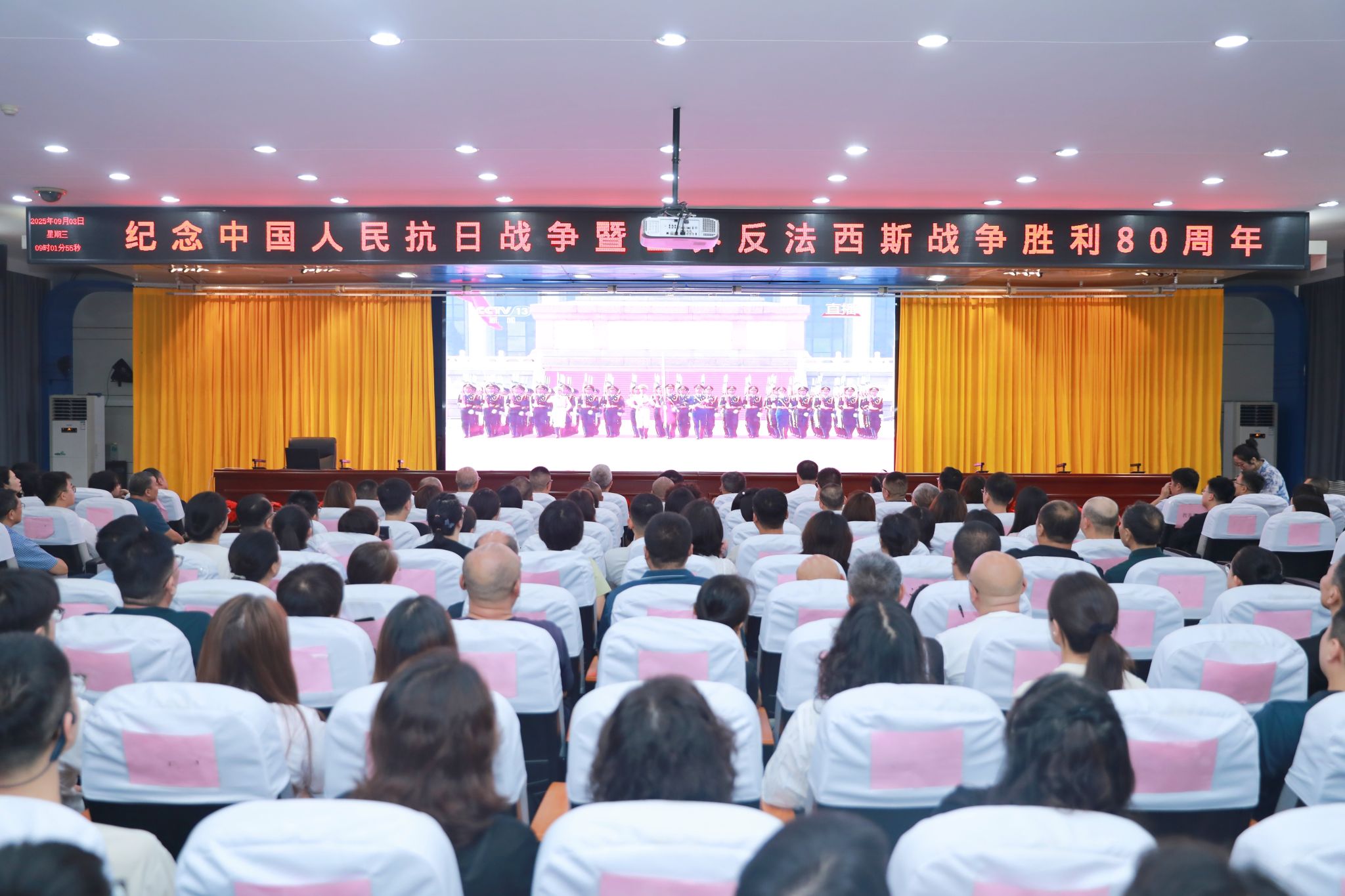 “伟大抗战精神,是中国人民弥足珍贵的精神财富,将永远激励中国人民克服一切艰难险阻、为实现中华民族伟大复兴而奋斗。”9月3日,红足—世官网在四校区同步设立直播分会场,组织观看纪念中国人民抗日战争暨世界反法西斯战争胜利80周年大会现场直播。全院师生集中收看大会实况。