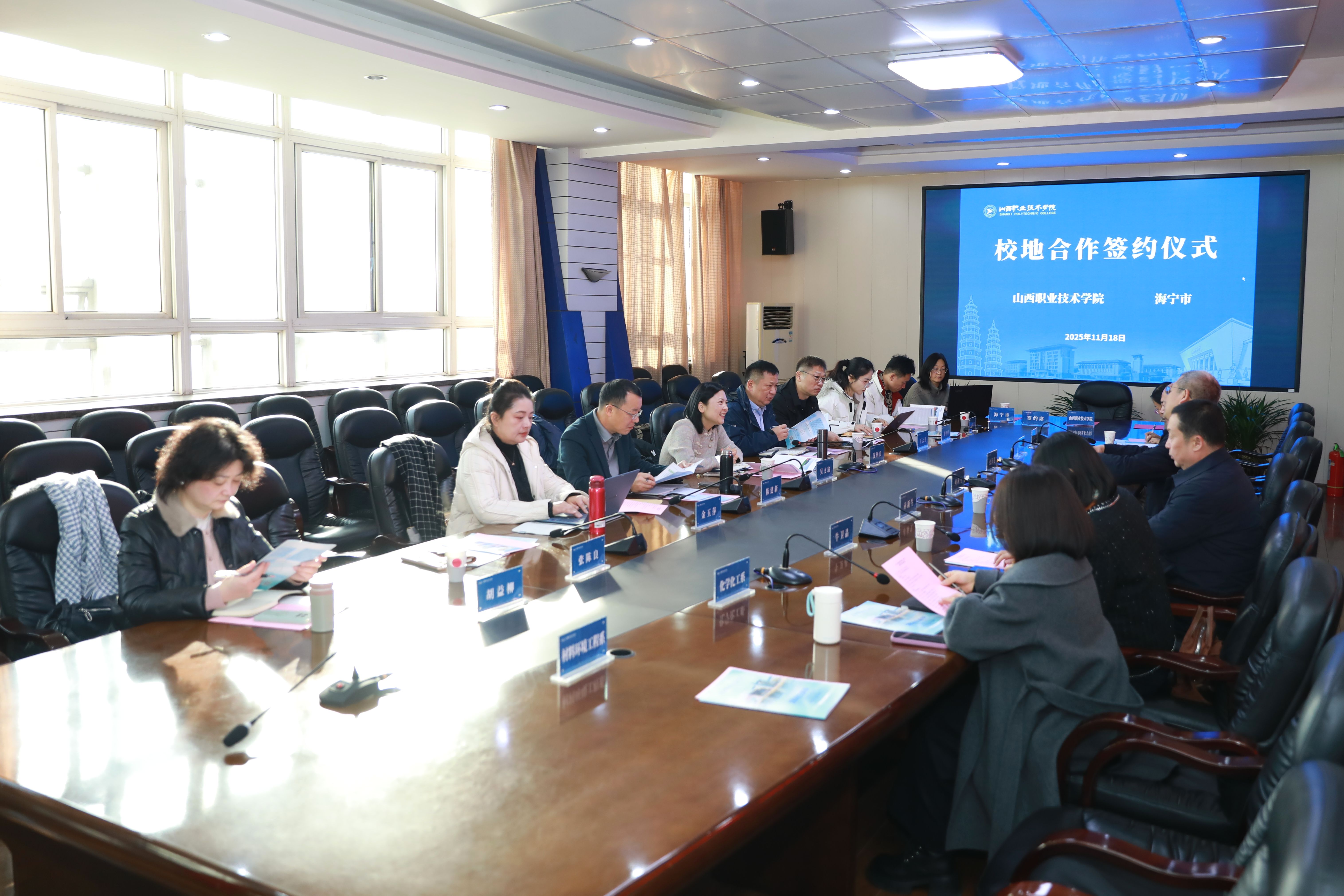 为深入贯彻落实国家职业教育改革发展战略,深化产教融合、推进政校企协同育人机制创新,切实拓宽学生高质量就业渠道,11月18日,红足—世官网与海宁市人力资源和社会保障局、黄湾镇人民政府及当地4家行业规上企业联合举行校地合作洽谈会,聚焦订单班式合作模式共建、人才培养与产业需求精准对接等核心议题展开深度研讨,并与黄湾镇政府现场签署校地合作协议。学院院长何秋生、副院长赤新生,招生就业指导中心、产教融合与对外交流发展中心负责人,机电工程系、材料环境工程系等相关系部负责人参会,精准对接长三角区域产业发展需求。