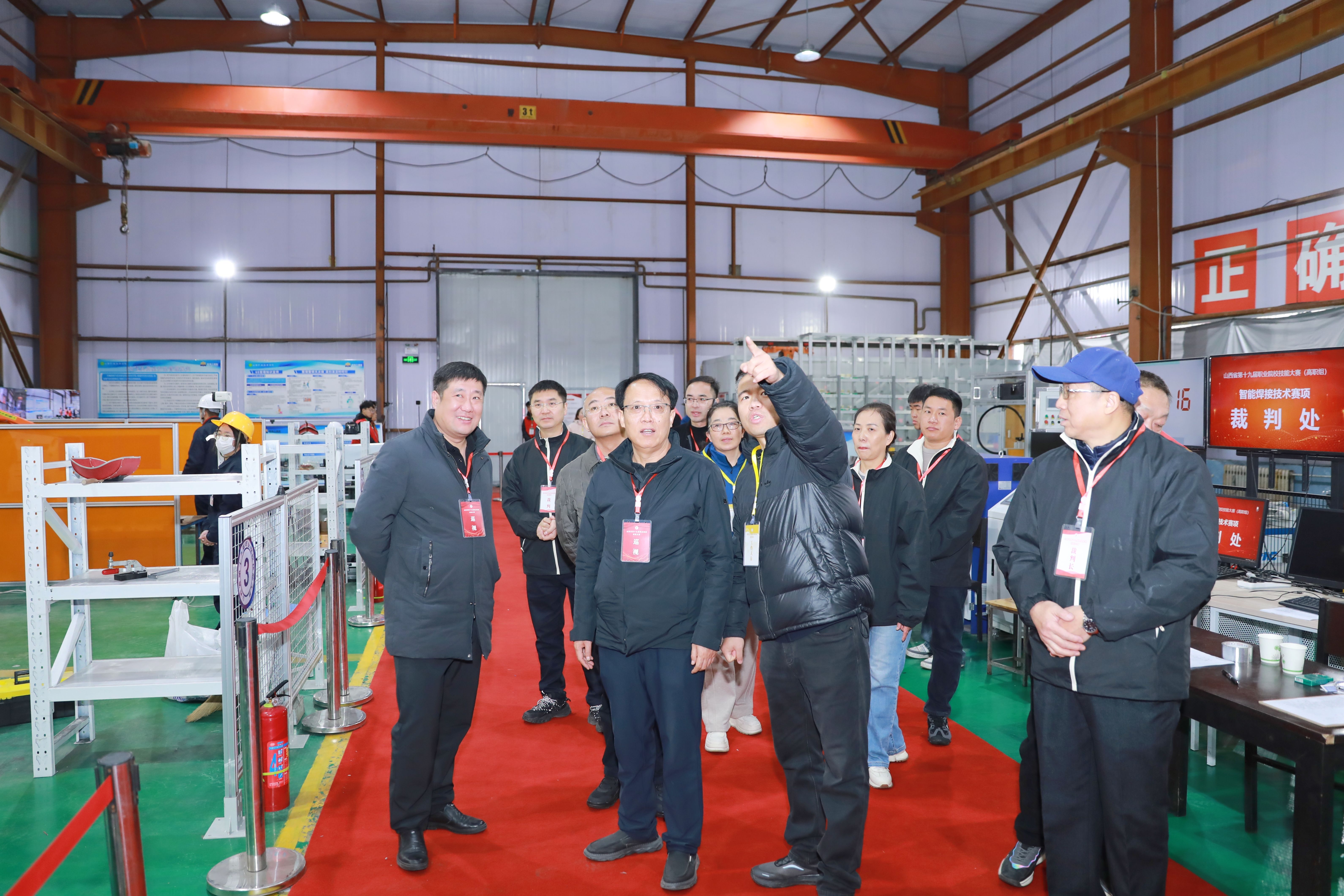 赛事期间,党委书记赵随民深入赛场督战,察看赛事运行情况,勉励选手沉着应战、锤炼技能,要求团队做好服务保障,展现山西职教良好风貌。赛场上,学子们专注竞技、尽显过硬素养;评委严谨履职,工作人员高效服务,共同保障赛事顺利推进。