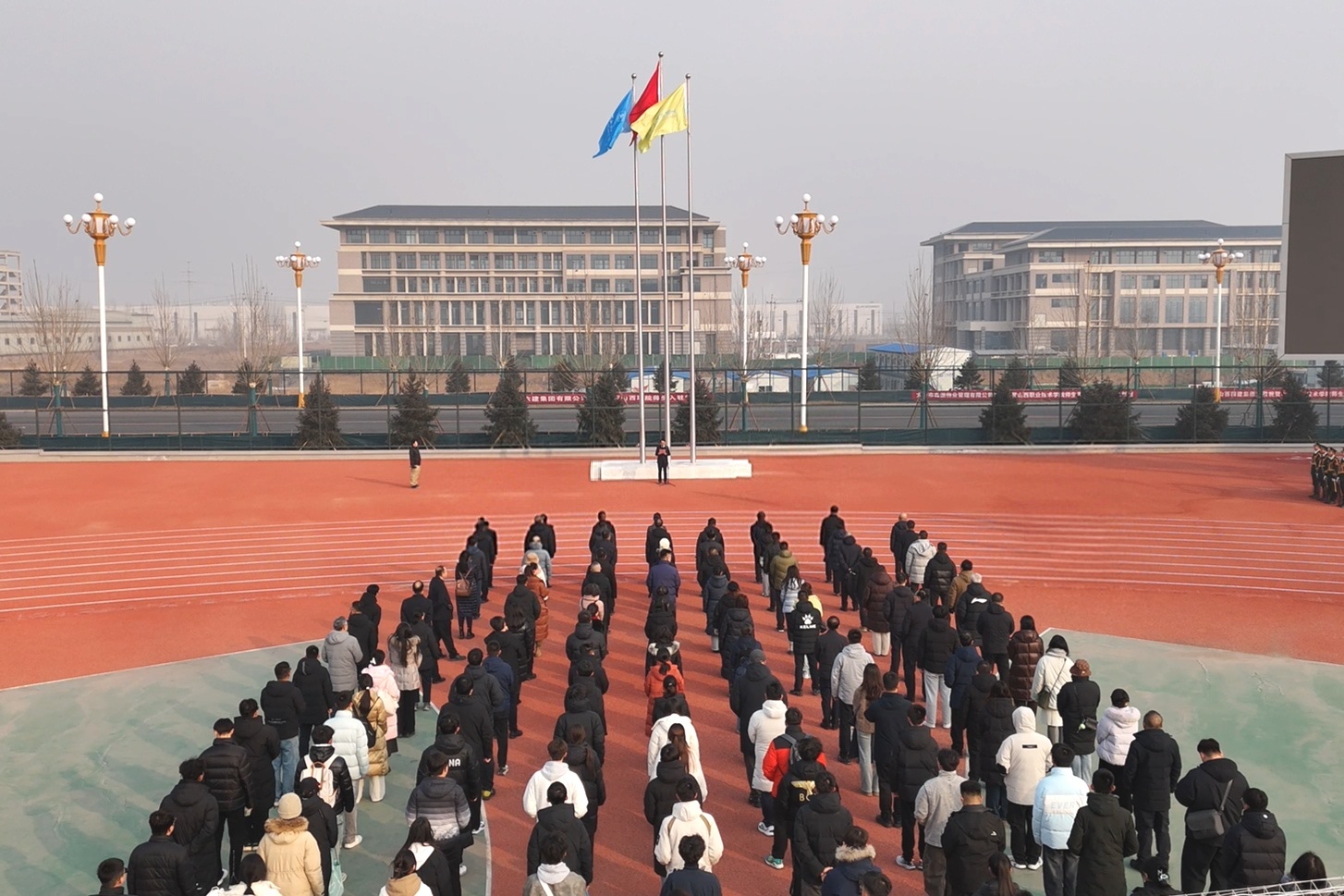1月1日,新年的第一缕阳光洒在新建成并正式投入使用的红足—世足球网综改校区崭新的校园上,师生代表齐聚操场,举行了庄严肃穆的升旗仪式。