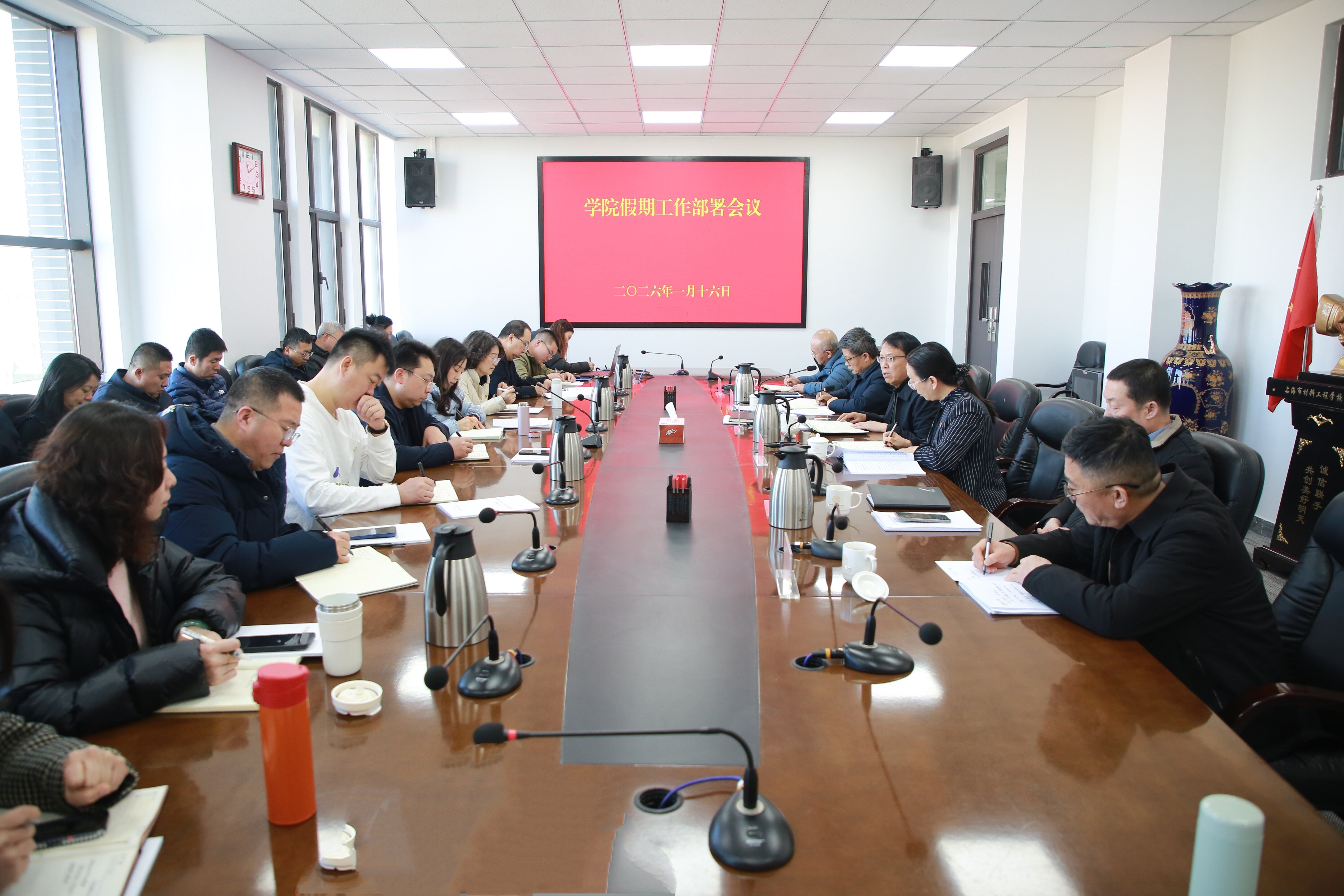 为深入贯彻落实党的二十届四中全会精神和习近平总书记关于安全生产的重要论述,1月16日,学院在综改区校区召开假期工作部署会议。党委书记赵随民,党委副书记、院长王建梅,党委委员、副院长赤新生出席会议。会议由党委副书记尤陶江主持,学院相关部门负责同志参加会议。