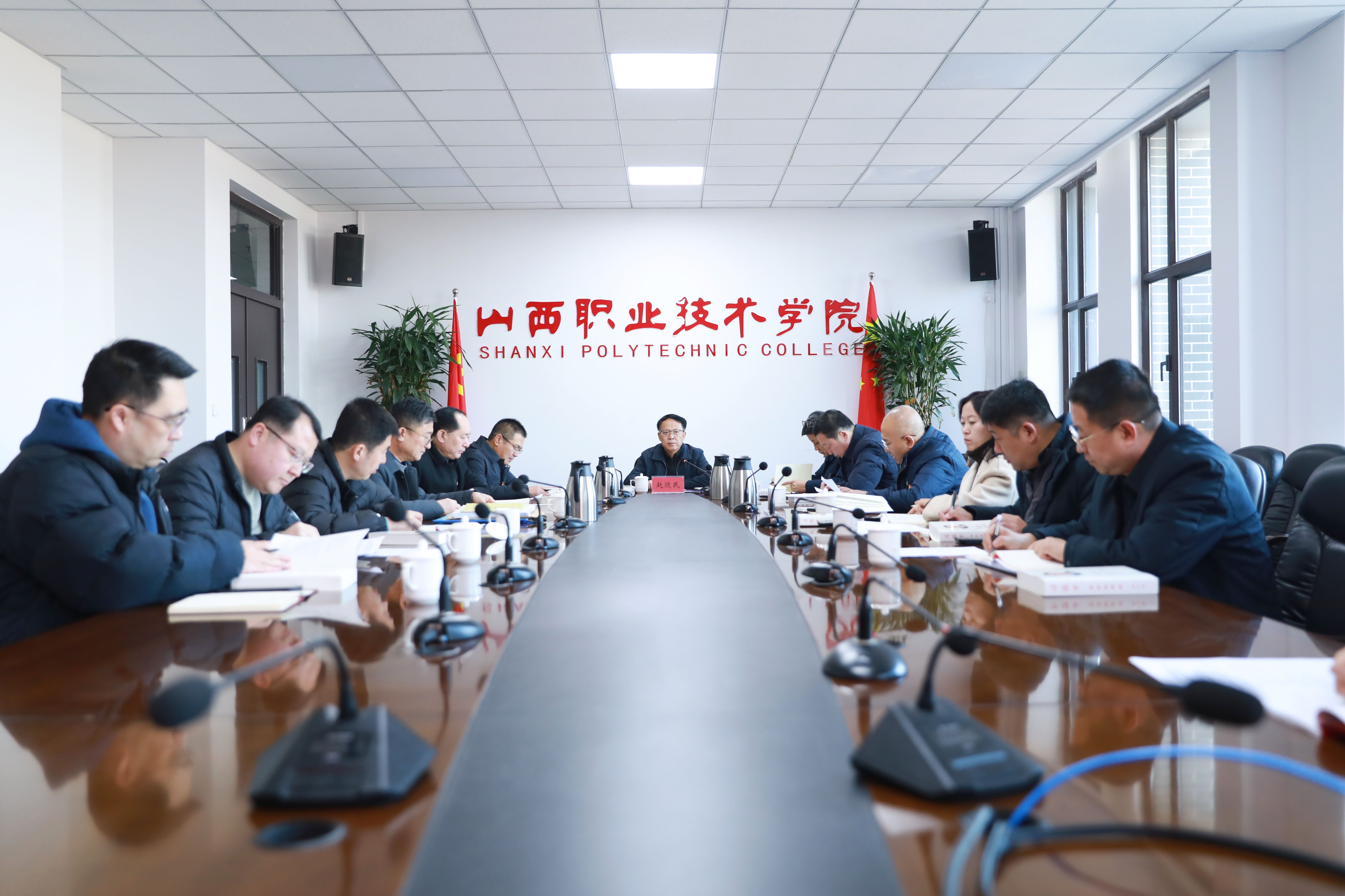 会议强调,要认真学习领会习近平总书记在专题研讨班开班式上的重要讲话精神,与学习贯彻党的二十届四中全会精神紧密结合起来,准确把握推进中国式现代化对职业教育提出的新要求、新使命,自觉将学院发展置于国家发展大局、山西发展全局中去谋划、去推动。要科学编制学院“十五五”发展规划,确保规划契合学院发展实际,符合国家战略和区域发展需求,重点在专业布局调整、师资结构优化、治理体系完善等方面拿出硬招、实招,将高质量发展要求贯穿教育教学、人才培养、产教融合、社会服务、国际交流合作等全过程各方面。要切实增强忧患意识,前瞻性防范化解各类风险,持续健全安全稳定工作机制,确保校园政治安全、意识形态安全和校园稳定,为学院推进各项工作任务提供坚实保障。