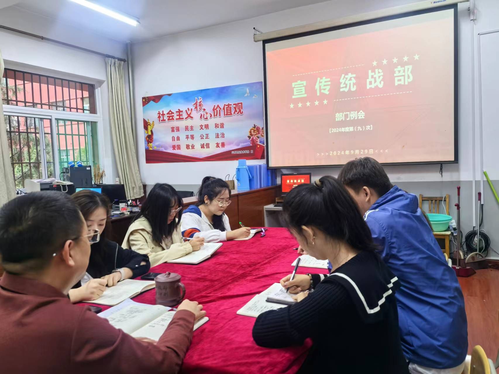 9月29日下午,宣传统战部召开了2024年第九次集体会议,宣传统战部全体成员参加,会议由主持工作的常务副部长张蔚钦主持。此次会议的主要内容包括观看“工匠领航”部门宣传成果、九月工作总结和近期工作部署安排,以及落实政治理论学习相关内容等。