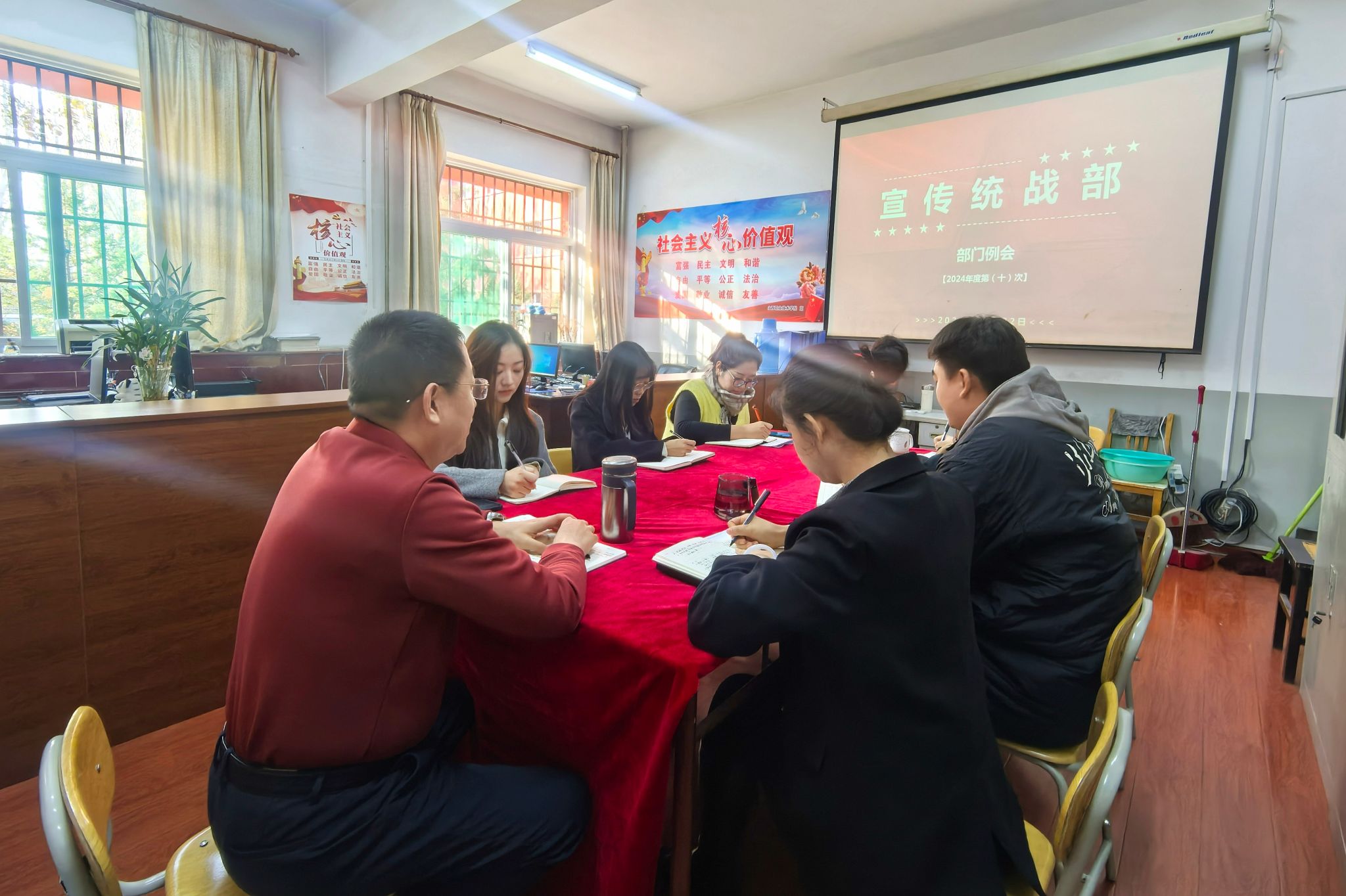 在总结工作的基础上,张蔚钦进一步明确了宣传统战部近期的重点工作任务。他强调部门全体成员要为本学期末有关全国文明校园的申报、年终总结和组织生活会等重要事项做好充分准备,确保各项工作的顺利开展与高质量完成。同时,对清廉学校建设月拍摄、社团招新大会、信教情况摸排等具体工作进行详细的任务分工。他强调,在学生工作上,宣传统战部要更加注重工作的深度、温度和厚度,切实关心学生的成长需求,积极为学生搭建展示自我、提升能力的平台,努力营造和谐、健康、向上的校园文化氛围。