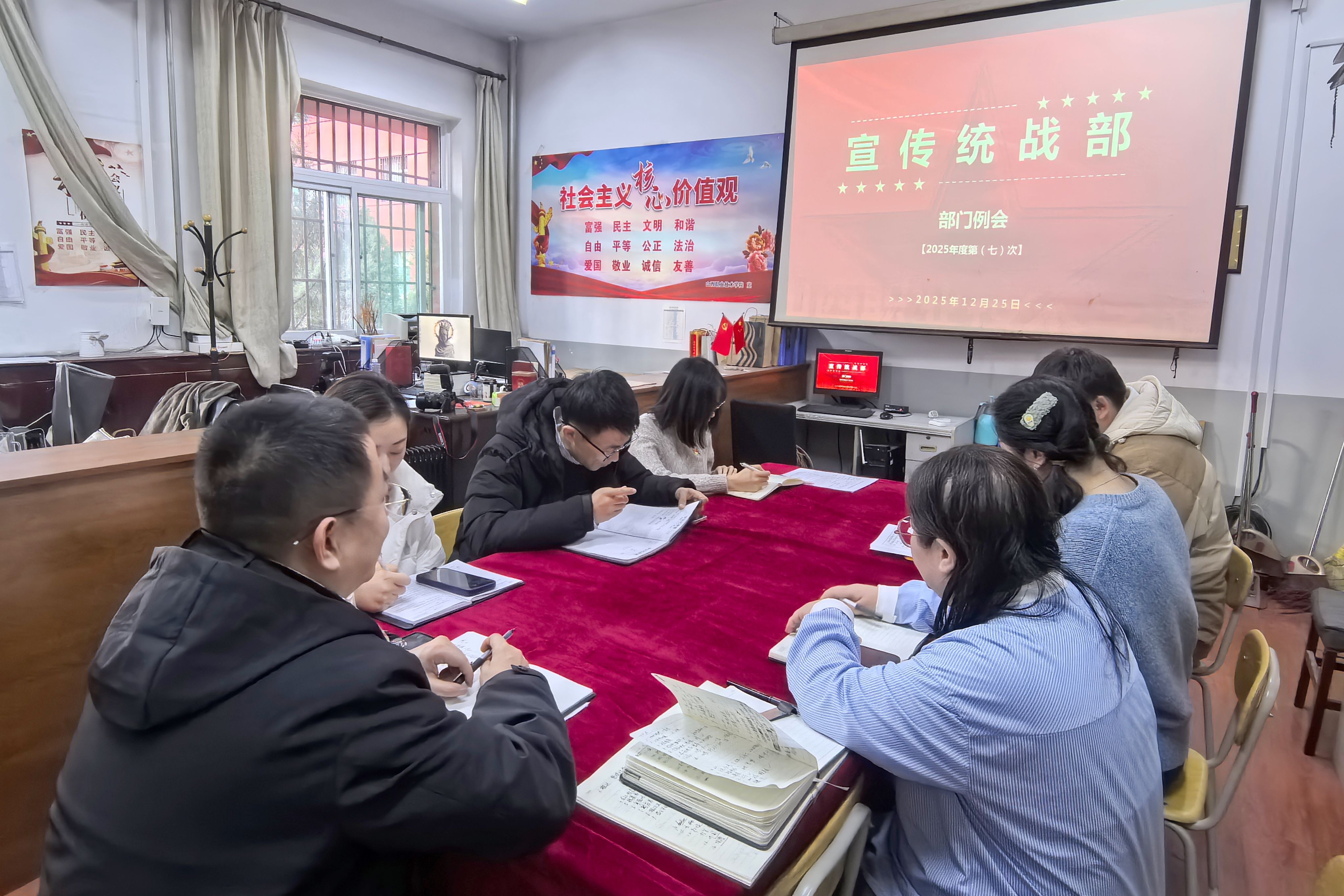 12月25日下午,宣传统战部召开了2025年第七次部门集体会议。会议由主持工作的常务副部长张蔚钦主持,宣传统战部全体成员参加。此次会议聚焦于年终工作总结、下一步工作计划以及党支部书记讲专题党课。