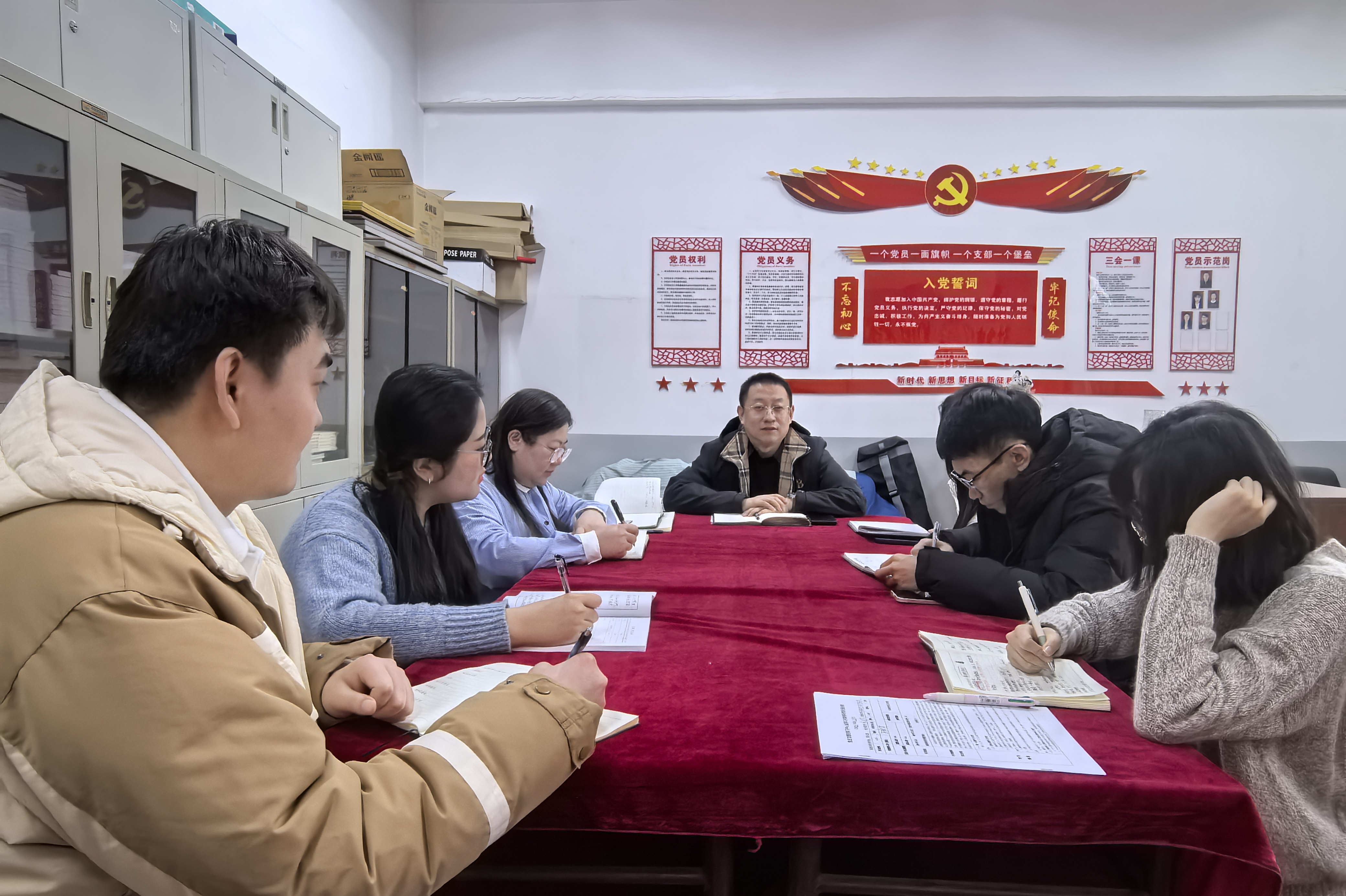 张蔚钦强调假期前的四项重点任务:一是启动新校区搬迁清点打包,逐项核对资产、档案和宣传设备,做到新旧校区无缝衔接;二是系统整理2023—2025年意识形态工作资料,分类归档、编号造册,迎接上级专项考核;三是积极准备年终制度考试,确保全员过关;四是高质量完成中心组学习、组织生活会及搬迁宣传动员。
